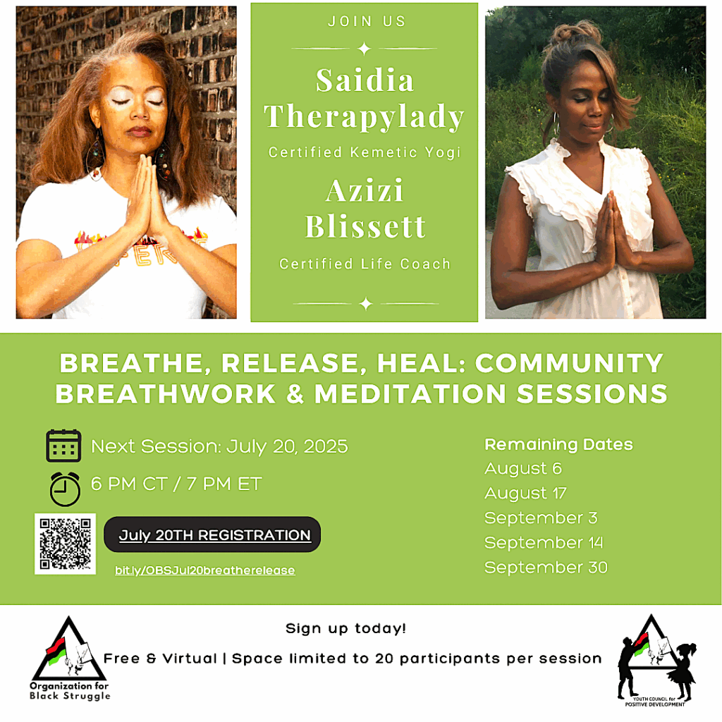 Support the Youth Council July 20, 2025 6:00 PM CST/7:00 PM EST VIA Zoom Register for the next Breathwork & Meditation Session scheduled on Sunday July 20, 2025. One session per person|Limited to 20 participants per session. REGISTER TODAY Join us for Breathe, Release, Heal—a free, virtual Breathwork & Meditation session designed to help you release […]